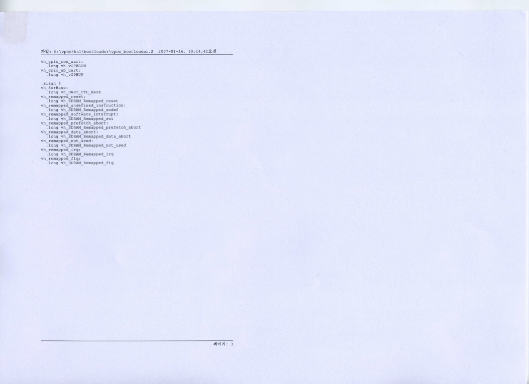 hal/bootloader 아래의 vpos_bootloader.S 파일이 부트로더가 되는 파일이다. 확장자에서 알수 있듯이 어셈블리어로 만들어져 있다.