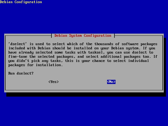tasksel 은 레드햇을 설치해본 리눅서는 알겠지만, 레드햇의 설치 방식처럼 프로그램들을 각각 종류별로 묶어 패키지로 설치하는 방식을 지원한다. 여기서는 'Yes' 선택한다.