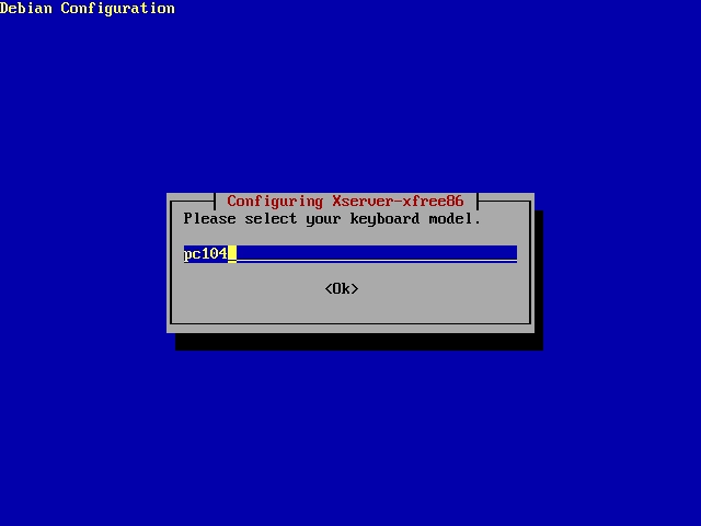 X 에서 사용할 키보드 모델명을 적어주면 된다. 여기서는 기본값인 'pc104' 적어준다.