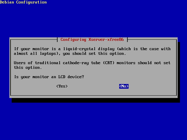 모니터가 LCD라면 'Yes' 선택한다. 그렇지 않다면, 'No' 선택한다.