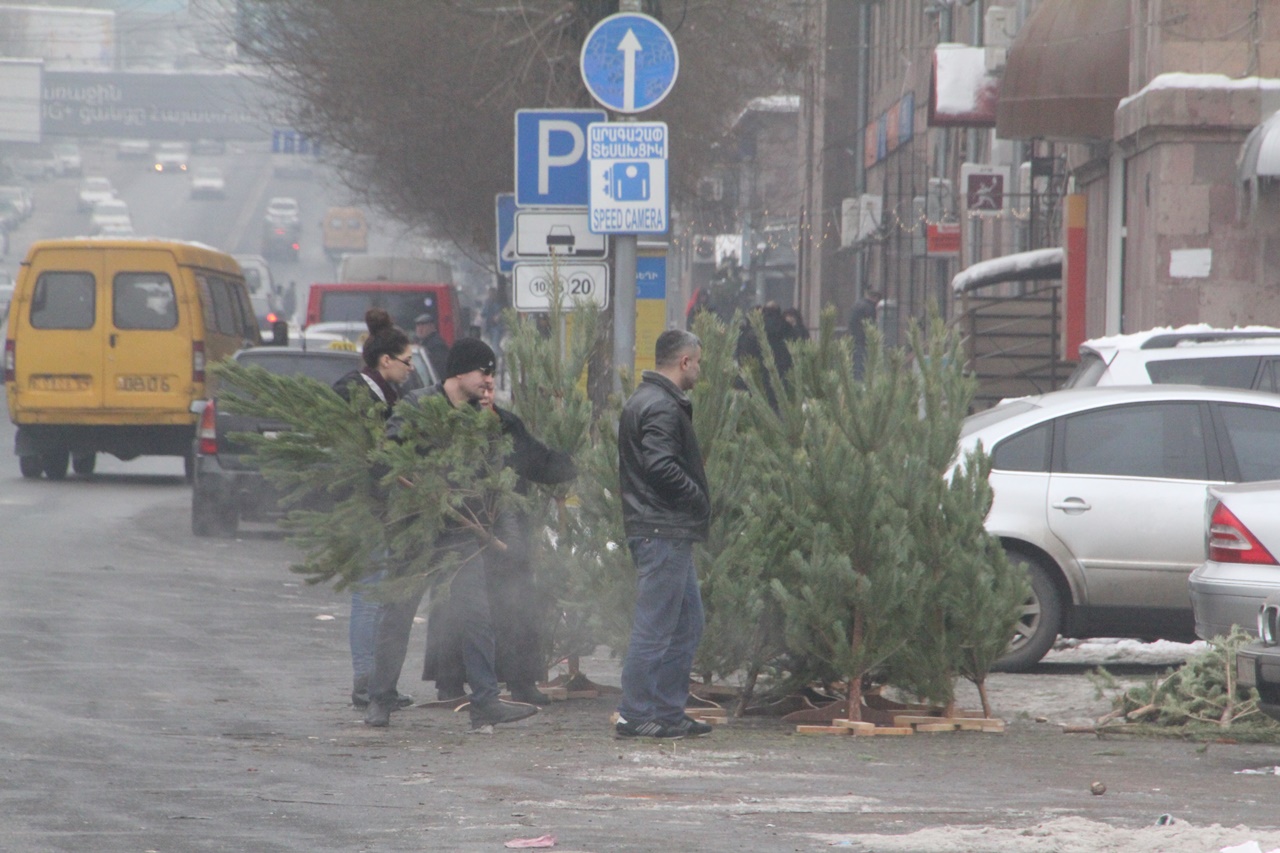 <거리에서 크리스마트 트리에 사용할 나무를 판다>