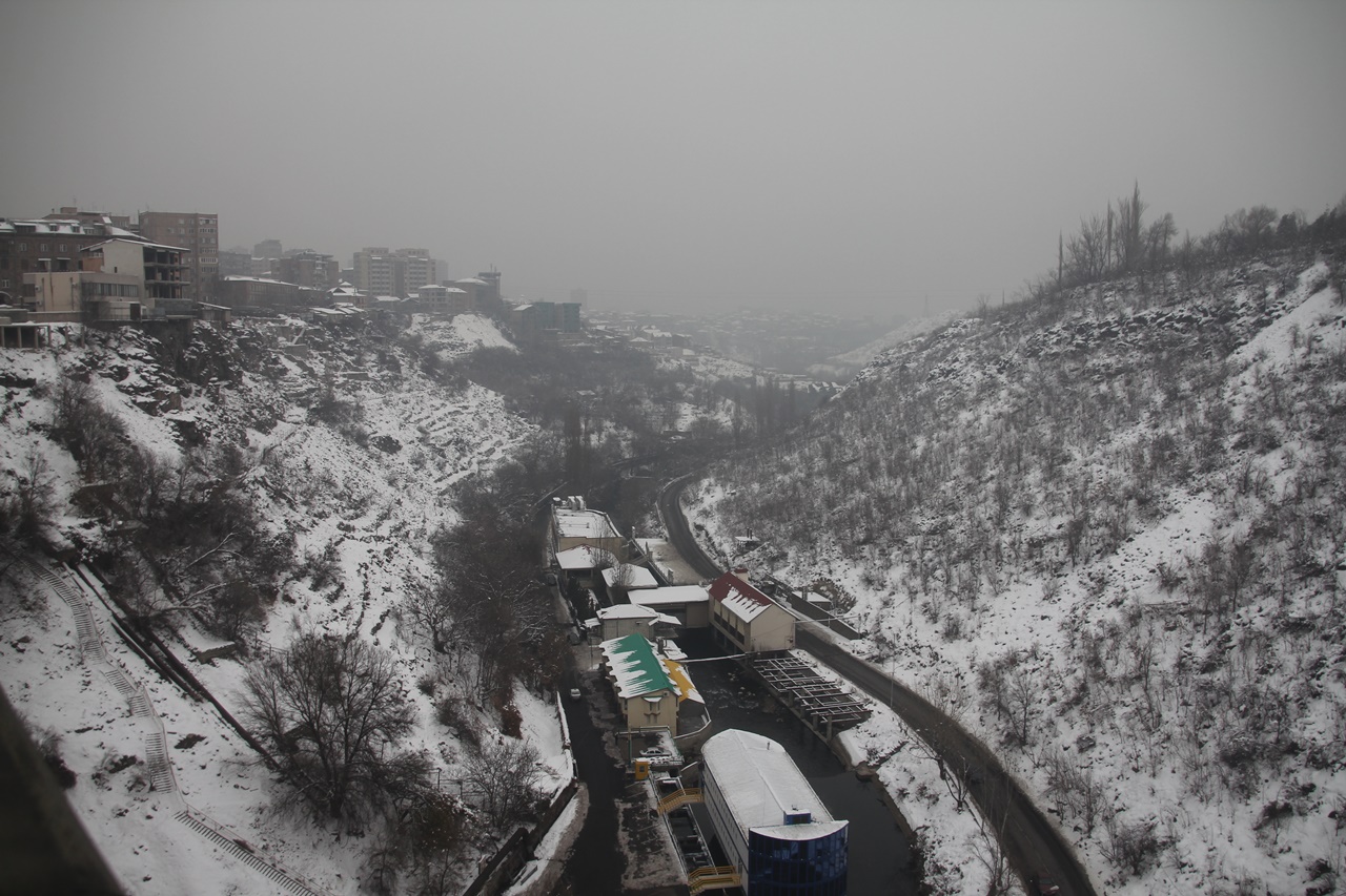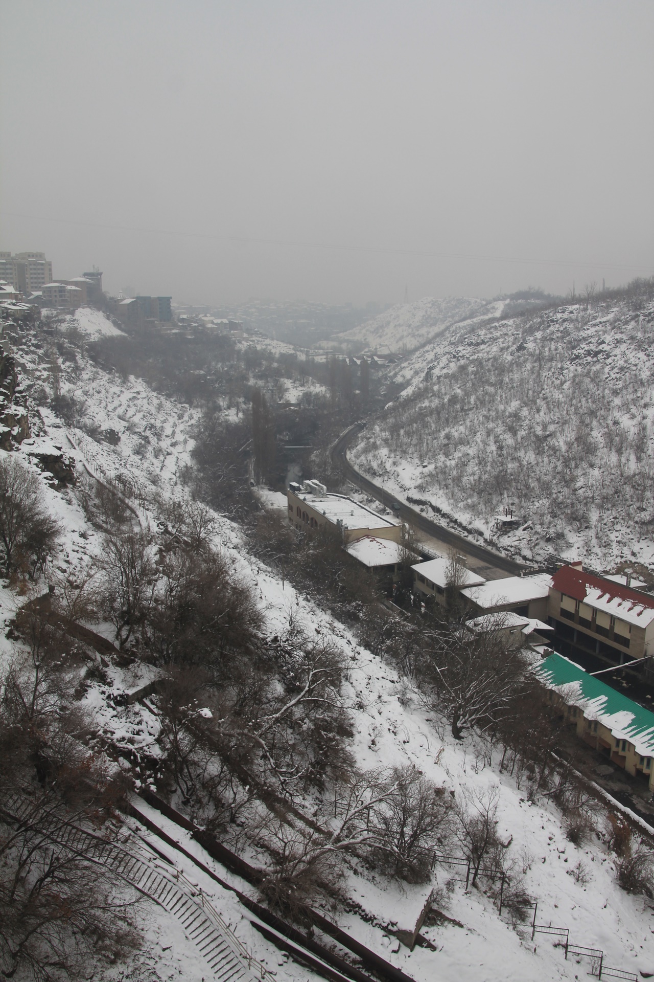 하늘은 구름이 잔뜩 끼어있고, 지붕마다 눈을 이고 있는 집들이 줄지어 보인다. 어제도 썼지만, 예레반에서 쨍한 날씨를 언제 봤는지 기억이 없다. 이런 날이 겨울철 내내 이어진다면 누구라도 우울증에 걸릴 것 같다.