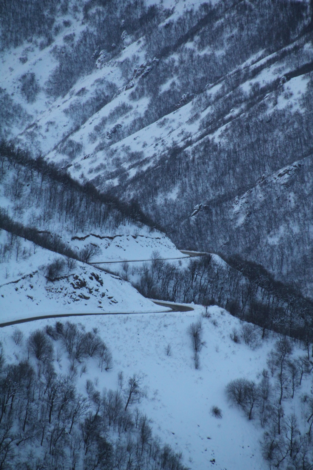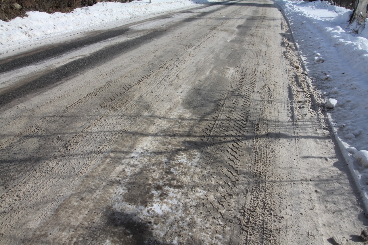 급경사가 끝나고 완만한 내리막이 이어졌다. 하지만 눈과 얼음으로 덮힌 도로는 계속되었다. 어쩔 수 없이 끌바는 계속되었다.