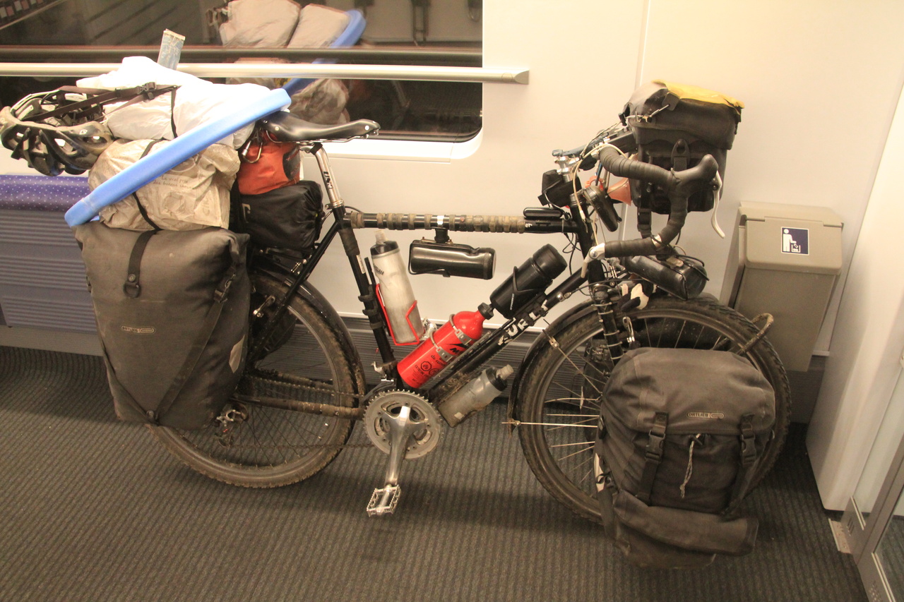 원래 여기서 15분 뒤에 프랑크푸르트 공항으로 가는 기차를 타야하는데, 30분 연착되었다는 내용이 전광판에 나왔다. 플랫폼에 엘레베이터가 있어 다행히 이를 이용해서 기차가 오는 플랫폼으로 이동이 가능했다. 이 열차는 자전거를 싣는 칸이 가장 뒤에 있었다. 아마 지금껏 타본 열차 중에 자전거 승객에게 가장 쾌적하고 편의성 높은 기차가 아닐까. 거치대마다 번호가 있고, 심지어 특정번호에는 예약이 되어있다는 메세지가 떴다. 지금와서 생각해보면, 굳이 예약은 필요없었다. 기차에 자전거를 실은 사람은 나 혼자 뿐이었다. 1시간 조금 넘게 달려 공항 역에 도착했다. 이때가 오전 11시 반 정도. 비행기 출발 시간이 오후 6시였으니, 꽤 넉넉한 시간이라고 생각했다. 하지만 지금와서 생각해보면, 정말 에누리없는 시간이었다는 걸 깨달았다.