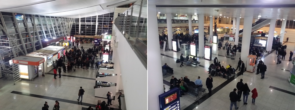 직원이 여러군데 전화해보더니 열차가 운행을 안한다고. 그리고는 1층으로 내려가서 버스를 타라고 했다.