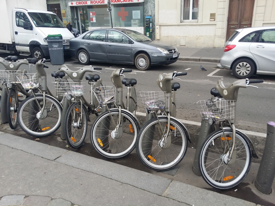 <파리는 공공자전거의 이용률이 높은 것으로 유명하다. 도로 곳곳에 자전거 표시가 보인다>