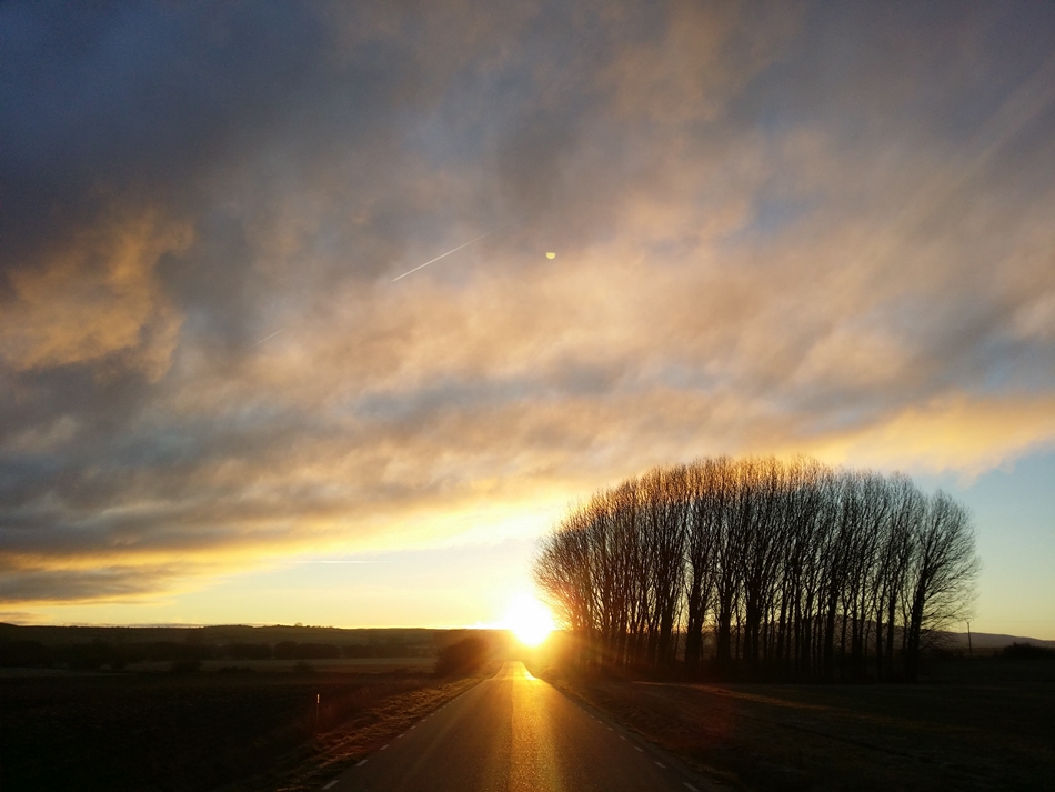 해가 뜨기전, 숙소를 나올 때는 구름이 잔뜩 몰려와 있었다. 하지만 동이 터 오자. 구름이 거치고 해가 모습을 드러냈다. 그 바로 아래로 구름이 빠르게 지나갔다. 정말 멋진 광경이었다. 한동안 걸음을 멈추고 지켜봤다. 오전내내 해를 등지고 걸었다. 길에는 한 발 앞서 걷는 그림자가 드리워졌다.