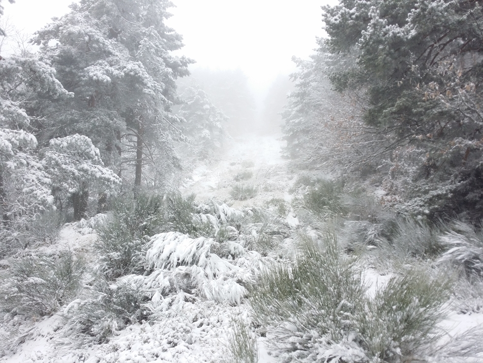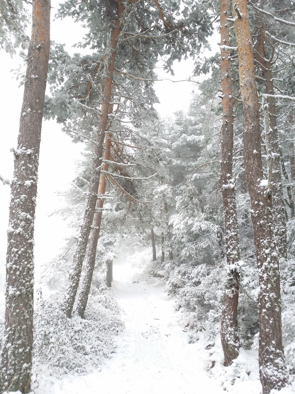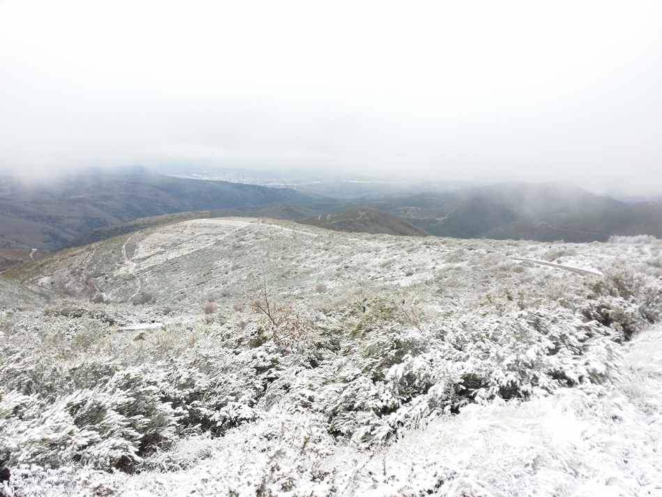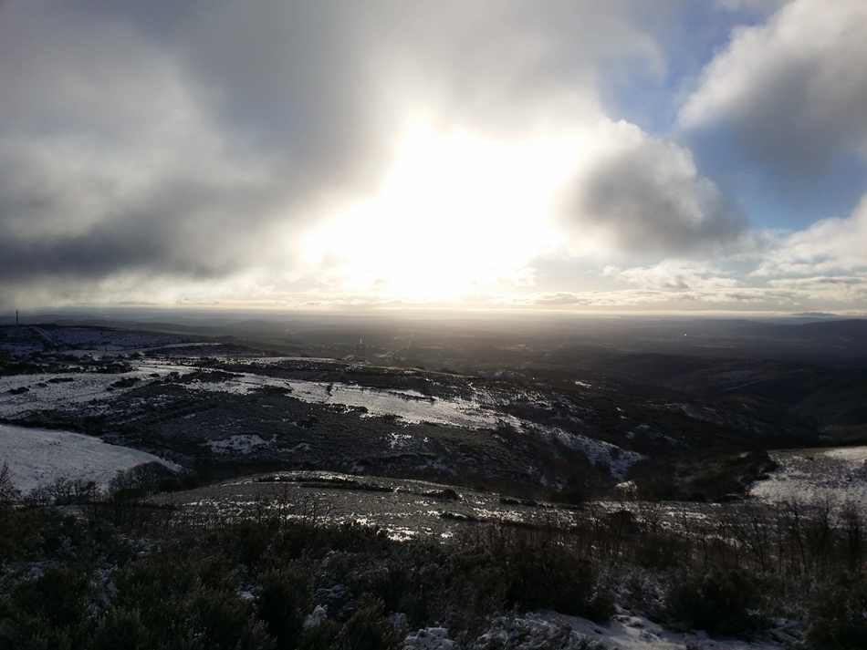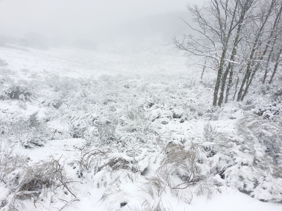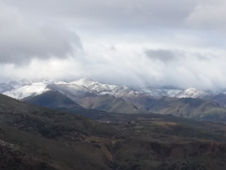 오늘 걸었던 길이 힘들기만 했던 건 아니었다. 구름이 거치자, 저 멀리 보이는 설산과 눈 덮힌 숲, 그리고 저 아래 폰페라다가 보였다.
