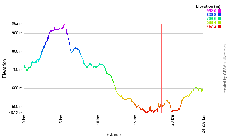 <왼쪽은 길지만 고도가 낮은 구간, 오른쪽은 짧지만 고도가 높은 구간. 오른쪽 산실(SAN XIL) 방향으로 걸었다>