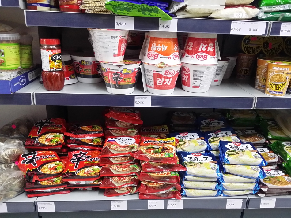 오후 2시무렵 알베르게에 도착해서 체크인을 하고 슈퍼마켓으로 달려갔다. 오늘은 요리를 해 먹으리라. 놀랍게도 신라면과 너구리. 김치맛 양념 등등 한국산 제품들이 진열되어 있었다. 한국인 순례자들이 그만큼 많다는 뜻. 유럽에 왔으면, 이곳 음식을 먹어봐야지. 미련없이 패스.