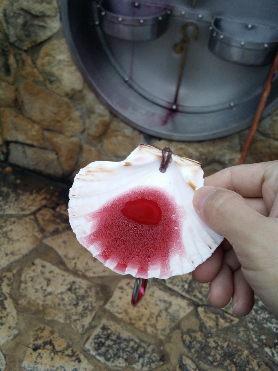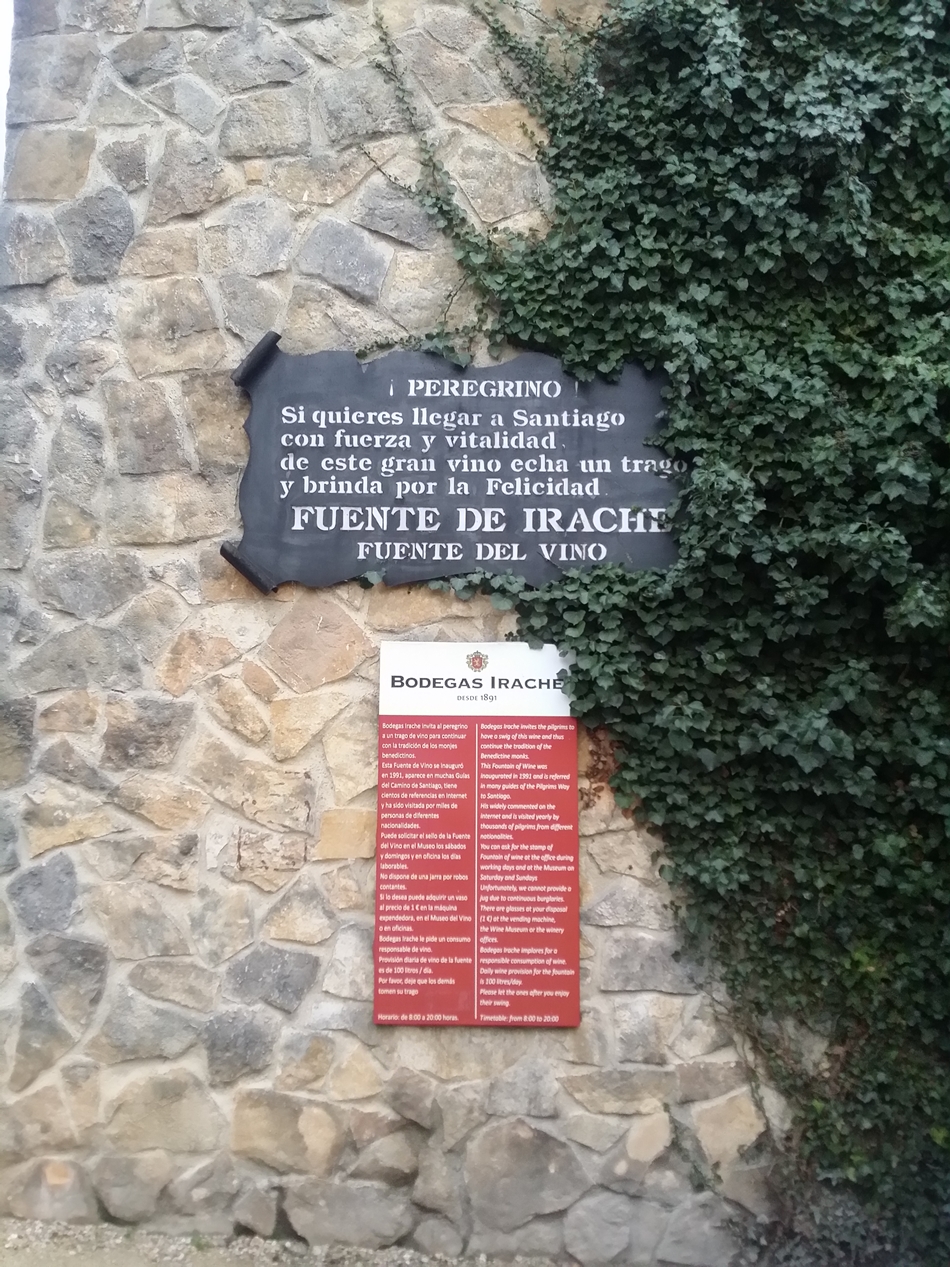 PS3. 오전에 아에게에서 산티아고 순례길의 가장 유명한 명소 중 하나인 무료로 와인을 마실 수 있는 곳에 들렀다. 한곳에는 물이 나오는 수도꼭지. 그리고 다른 한 곳에는 와인이 나오는 수도 꼭지. 순례자들을 위해 무료로 제공하는 것이다.