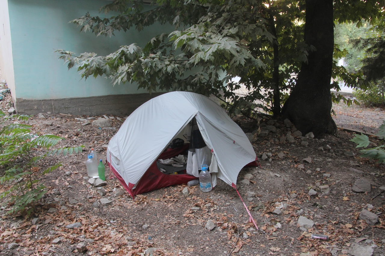 이제 먹을 수 있는 물만 찾으면 된다. 한참을 둘러봤지만, 산에서 내려오는 깨끗한 물줄기를 찾을 수는 없었다. 결국 식수는 사 먹고, 씻는 것은 계곡물을 이용하기로 했다. 텐트를 치기 시작했다. 여기서 며칠 머물 생각이다.