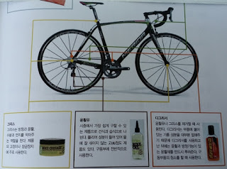 자전거는 작동 부위가 많아 윤활유를 잘 뿌려주어야 잡음이 나지 않고 제 성능을 발휘한다. 수많은 윤활유와 케미컬 제품이 시중에 나와있다. 그 중에서 종합적인 용도로 사용할 수 있는 테프론 오일과 체인오일, 디그리셔, 그리스, 광택제 정도 등만 있어도 충분하다.