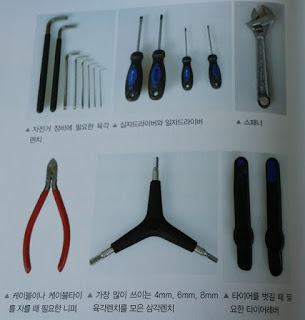 스패너와 펜치 페달이나 볼트, 너트를 풀고 잠글 때 필요하다.