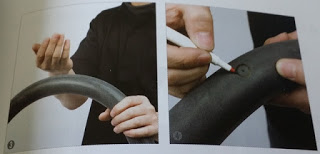 - 볼펜으로 펑크 부위를 표시한다. 표시해 두지 않으면 바람이 빠졌을 때 찾기 어렵다.