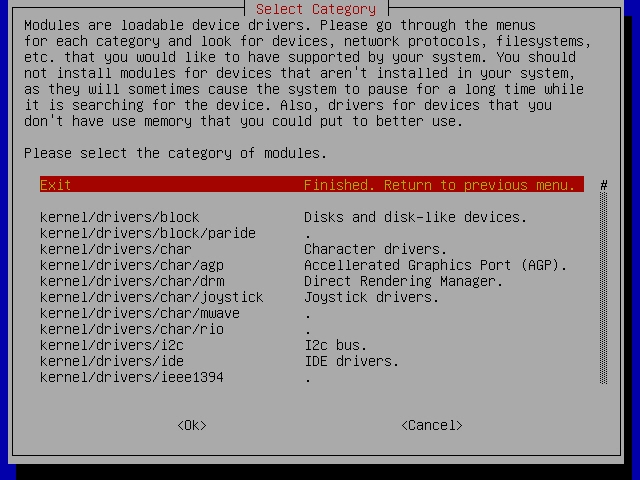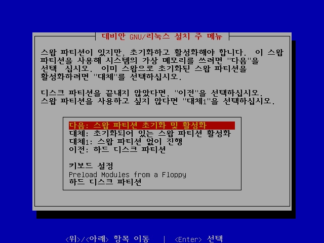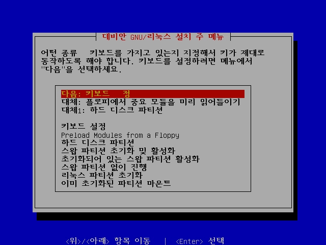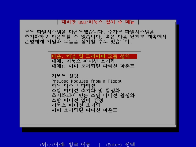 재밌는(?) 파티션 설정을 끝내고, 이제 부터 커널 및 드라이버 모듈 설정으로 넘어간다.
