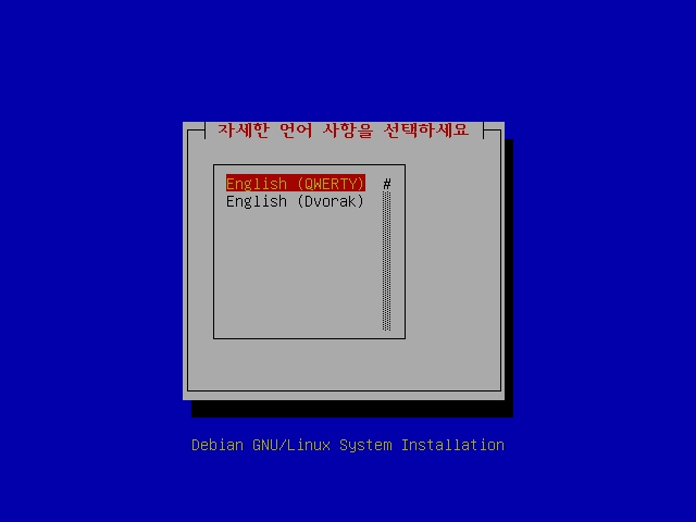언어방식을 선택해 주어야 한다. 거의 99.9% 는 'QWERTY' 를 선택해주면 된다.