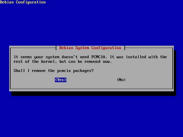 Pcmcia 패키기를 삭제할지 여부를 묻고 있다. 일반적인 경우라면 필요가 없으므로 'Yes' 선택한다.