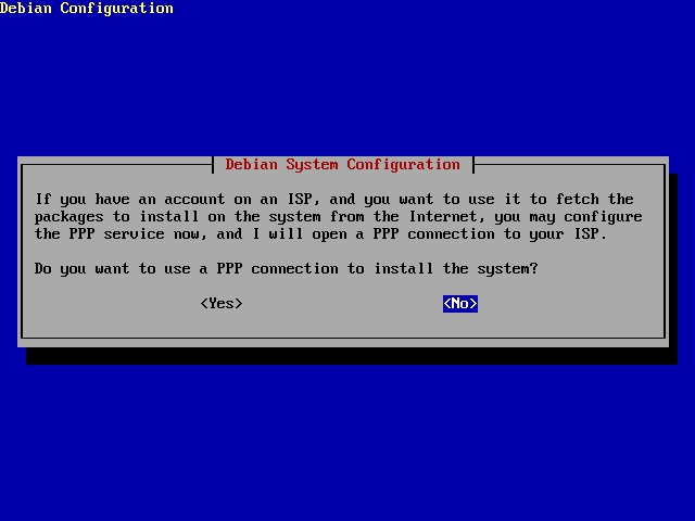 PPP 연결을 사용할 것인지를 묻는다. 요즘 거의 대부분에서 PPP는 사용하지 않으므로 'No' 선택한다.