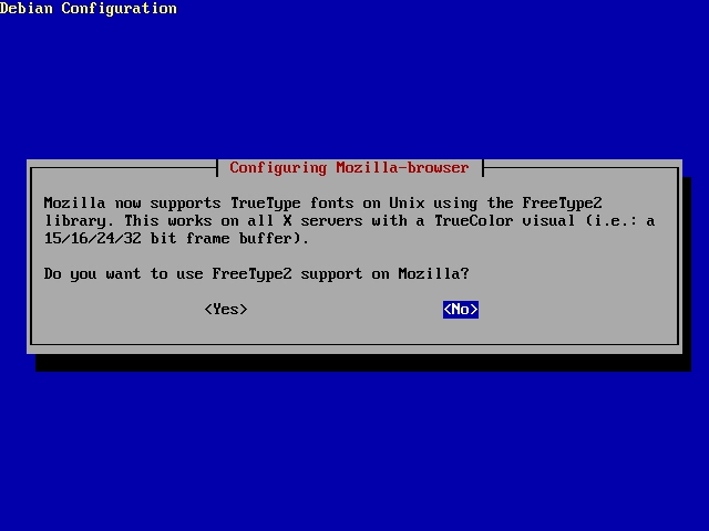 모질라에서 FreeType2 사용 여부를 묻고 있다. 여기서는 'No' 선택한다.