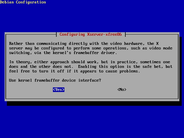 커널에서 프레임버퍼를 사용할지 여부를 묻고 있다. 여기서는 'Yes' 선택한다.