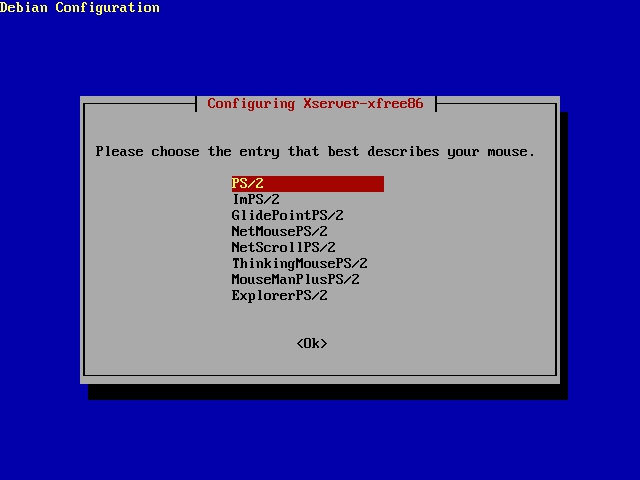 마우스 설정 부분이다. 여기서 PS/2 마우스라면, '/dev/psaux' 선택하고, USB 마우스라면, '/dev/input/mice' 선택한다.