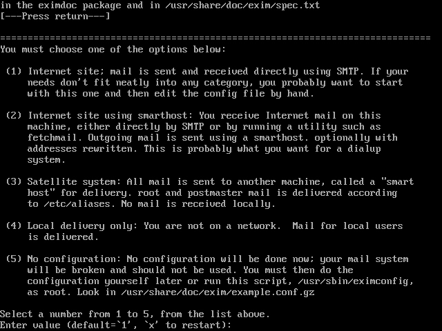 exim 설정 부분이다. 여기서는 '(5)' 선택한다.