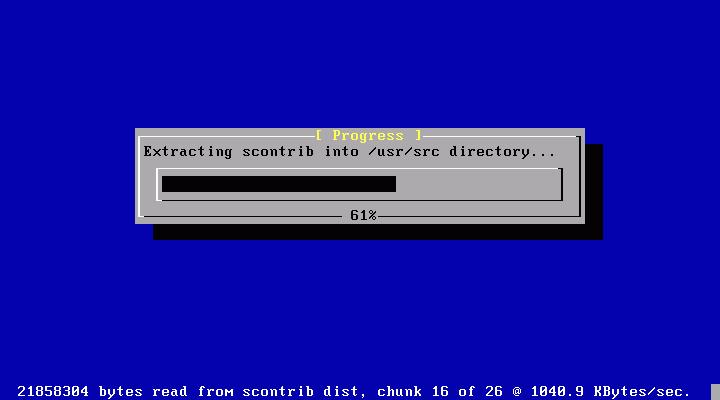 CD롬 부팅을 하면, 아래 그림이 뜬다. 이는 프비 5.x 들어서부터 생긴 부팅화면인데, 옆에 서있는 데몬(프비의 마스코드다)가 귀엽기만 하다 ^^;