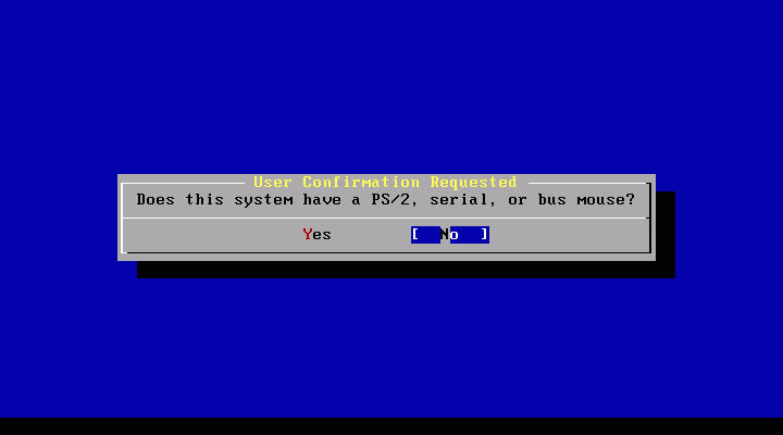 다음은 마우스 설정이다. X window 를 사용한다면, 반드시 있어야 한다. 마우스가 있다면, 'Yes' 를 선택한다.