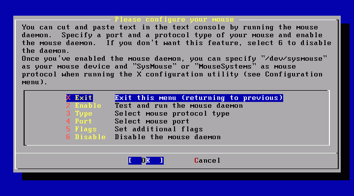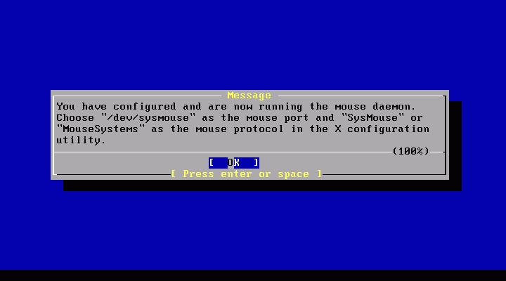 마우스 장치를 지정해주는 부분이다. 앞에서 것과 같이 그냥 'Enter' 치고 넘어가면 기본적으로 '/dev/sysmouse' 로 설정된다.