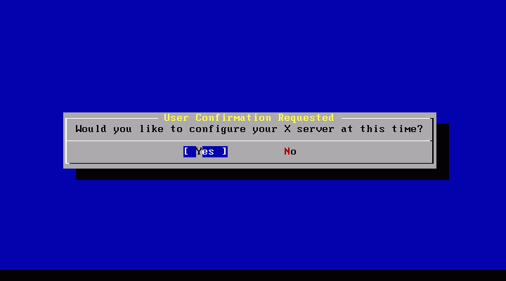 X server 를 설치 여부를 묻는다. 여기서는 'Yes' 를 선택했다.
