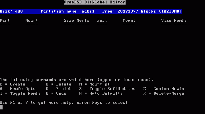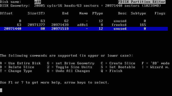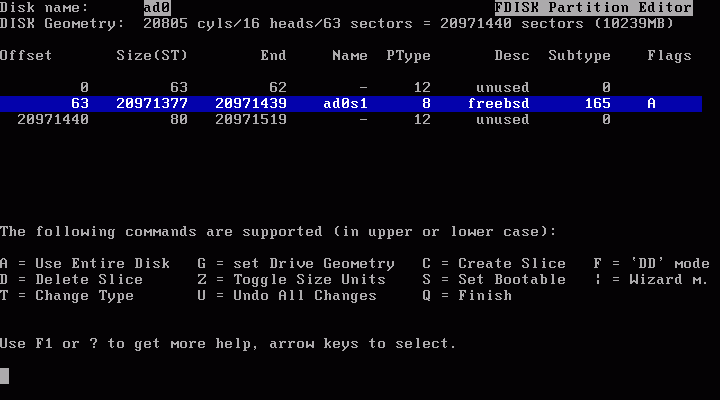 위에서 'Standard' 를 선택하면 아래와 같이 FDISK 화면이 나온다. 여기서는 프비를 설치할 전체 파티션 하나만 정해주면 된다. 혹시나 리눅스에서 처럼 각 파티션을 지정주지 않아도 된다. 나중에 각각의 파티션을 지정하는 부분이 있다.