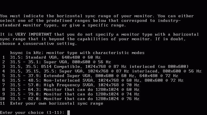 모니터 설정이다. 정확히 현재 모니터의 해상도를 모른다면, 가장 근접한 값을 선택하면 된다. 하지만 개인적으로 모니터 메뉴얼을 보고 정확한 값을 입력하는 방법을 권장한다.