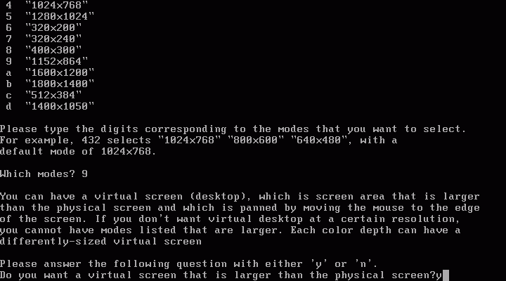 가상(virtual) 화면이 물리(physical) 화면보다 클때 사용할 것이지를 물어본다. 여기서는 'y' 선택했다.