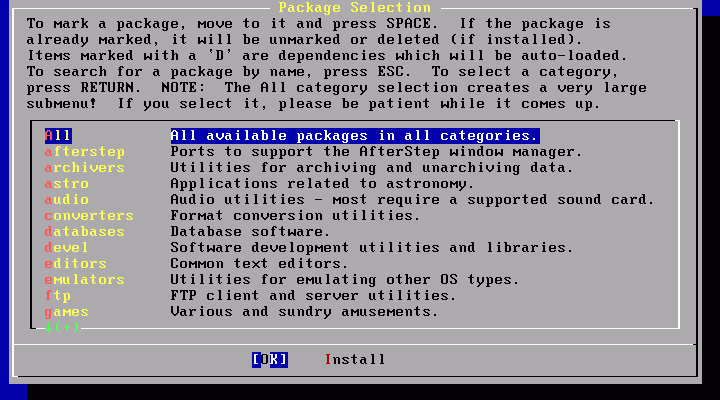 여기서는 패키지를 선택해서 설치하는 과정이다. 보면 알겠지만, 프비가 지원하는 애플리케이션 엄청나게 많은 것을 알 수 있다. 필요한 것만 체크해서 설치하면 된다.
