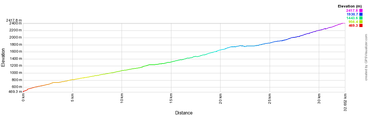 그곳에 도착했을 때, 고도는 2300m 까지 올라갔고, 시간은 6시 무렵이 되었다. 다리는 후들거렸고, 숨이 가빠왔다.