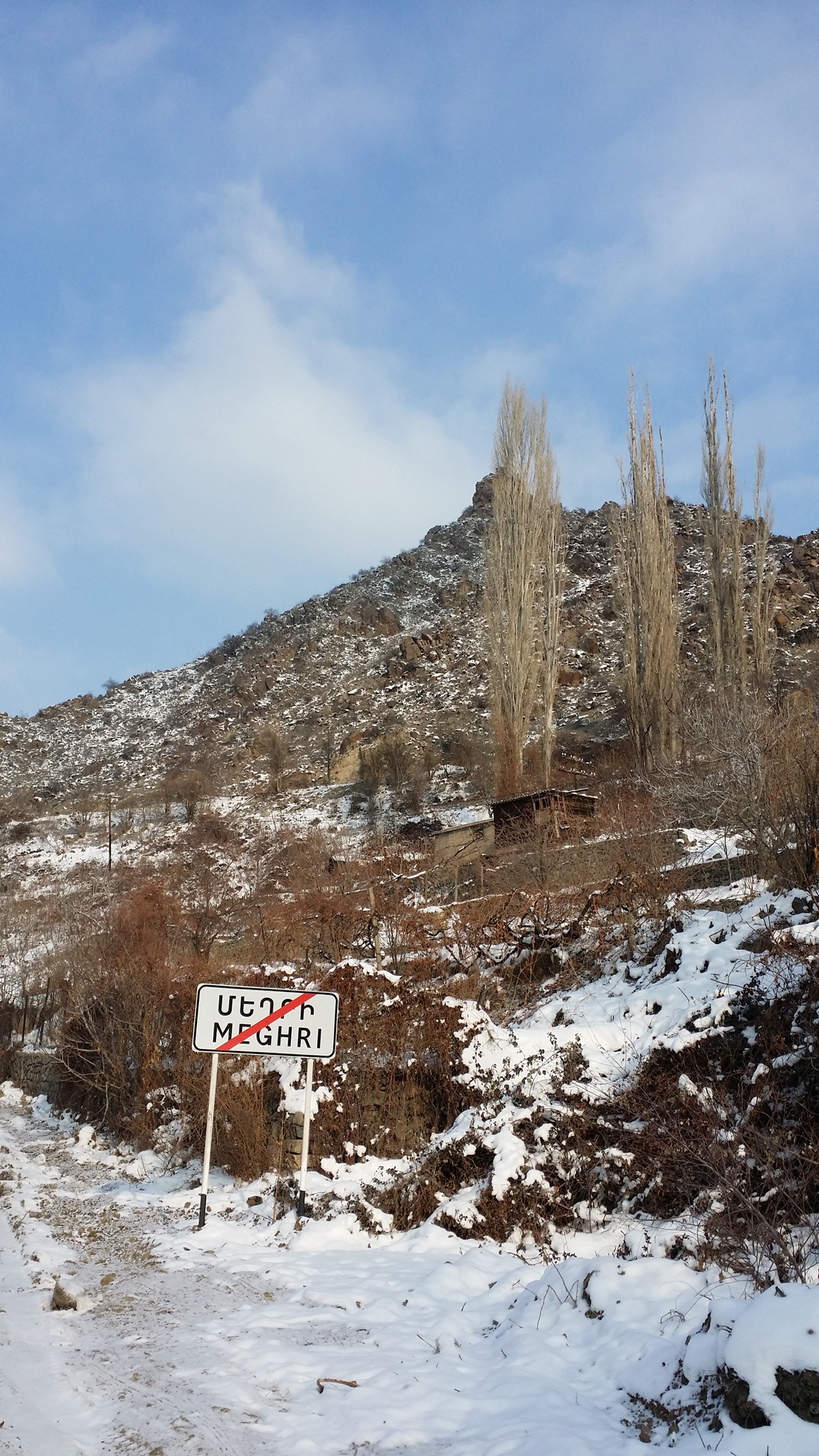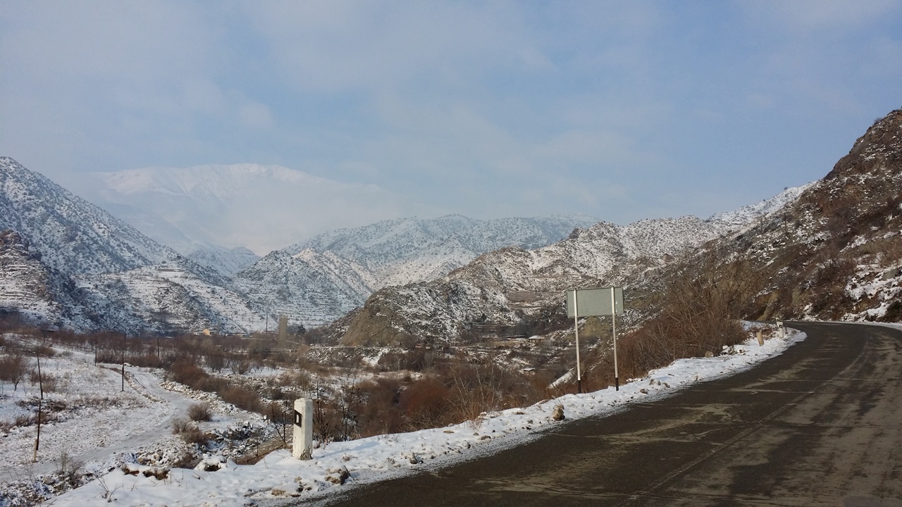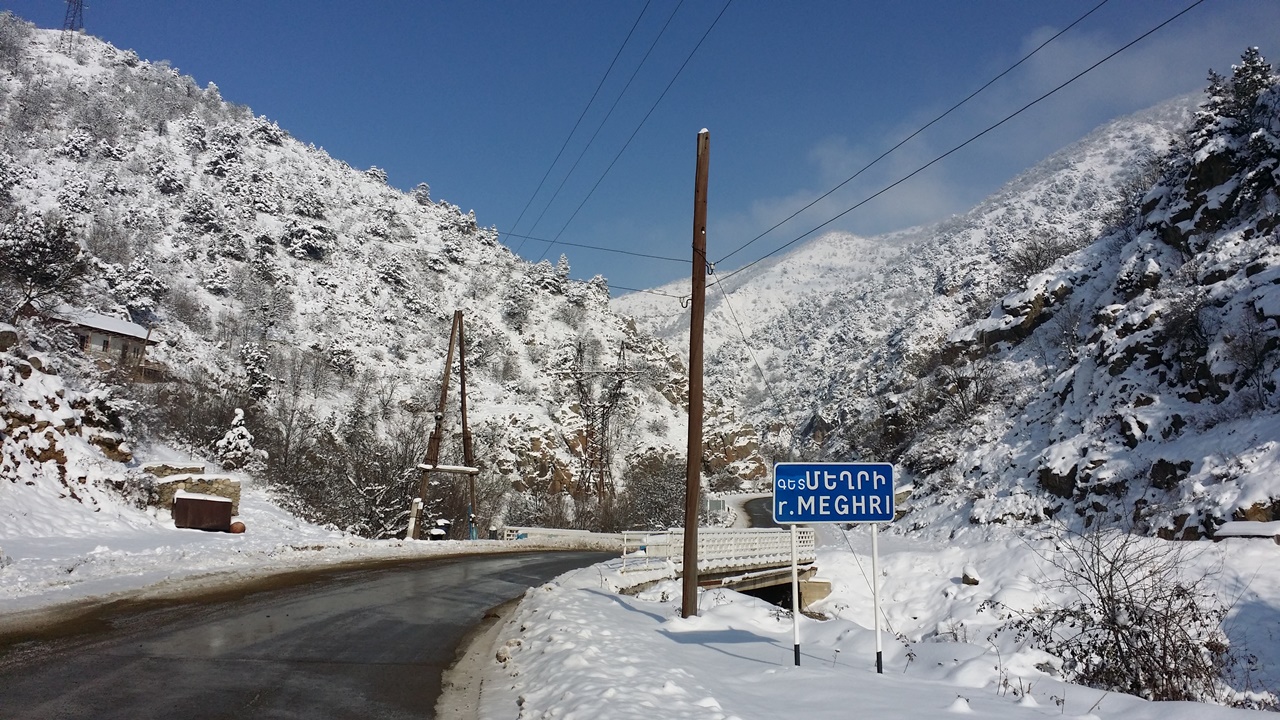 오전 8시 반 무렵 출발하여 저녁 6시 무렵까지 계속된 끌바. 업힐이라, 추운 줄 몰랐다. 약 30 여 킬로미터를 걸은 셈이다. 숙소가 있던 Meghri 을 벗어난 이후로는 상점하나 볼 수 없었다. 이따금 식수용으로, 흘러 내리는 계곡물을 퍼올려 만든 개수대가 있긴 했다. 앉아서 쉴 곳마저 찾기 어려웠다. 도로만 바로 벗어나도 눈 밭인 데다가, 곳곳에 출입을 통제하는 철조망이 쳐저 있었다. 점심으로 어제 샀던 초콜렛을 먹었다.
