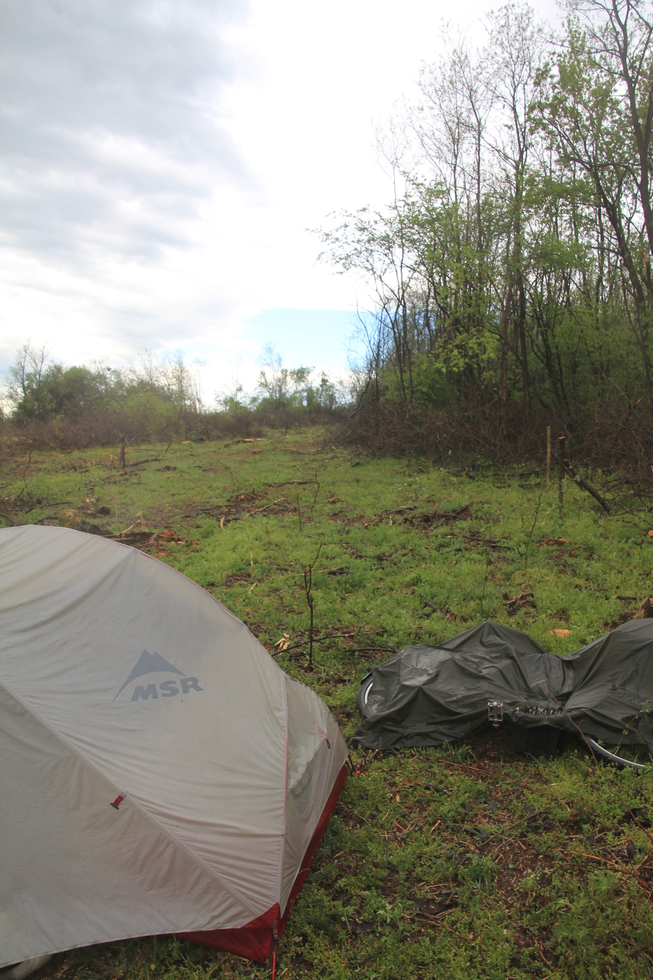 PS2. 어젯밤 임시방편으로 여분의 텐트 그라운드 시트로 자전거를 덮어 놓았다. 비를 막기 위함이었는데 아침에 보니 꽤 괜찮은 방법이었다.