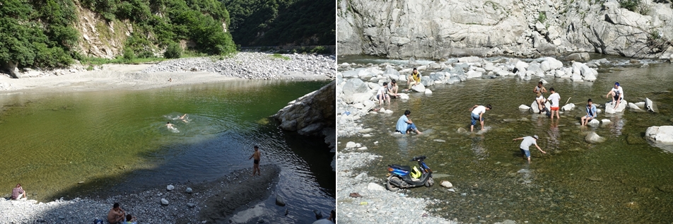 강이 시작되는 상류쪽으로 갈 수록 흐르는 물은 더 깨끗했다. 물의 흐름이 빠르지 않은 곳에서는 사람들이 물놀이를 즐기고 있었다.
