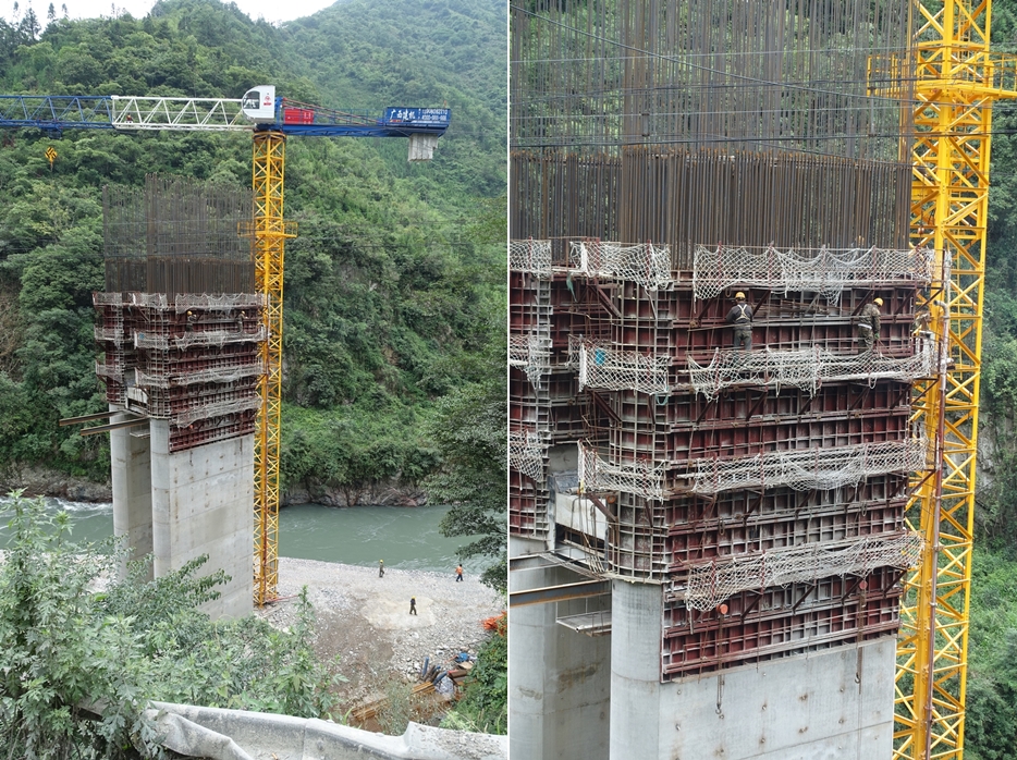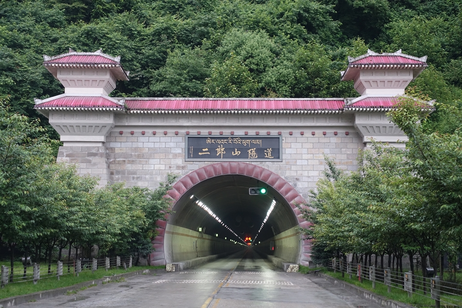 터널을 지나자 지금까지 보지 못했던 새로운 풍경이 보였다. 뭔가 티벳스러운. 도로의 대형 간판에도 중국어와 함께 티베트어(?)가 함께 쓰여있었다.