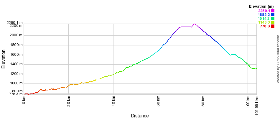 오늘 루트는 천전(848m)에서 올라가 2170m 고도까지 올라간 후 다시 1330m 의 루딩으로 간다.