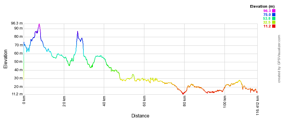 바람도 다행히 순풍으로 불어줘서 여행을 시작한 이래로 가장 많은 115 Km 를 달렸다.