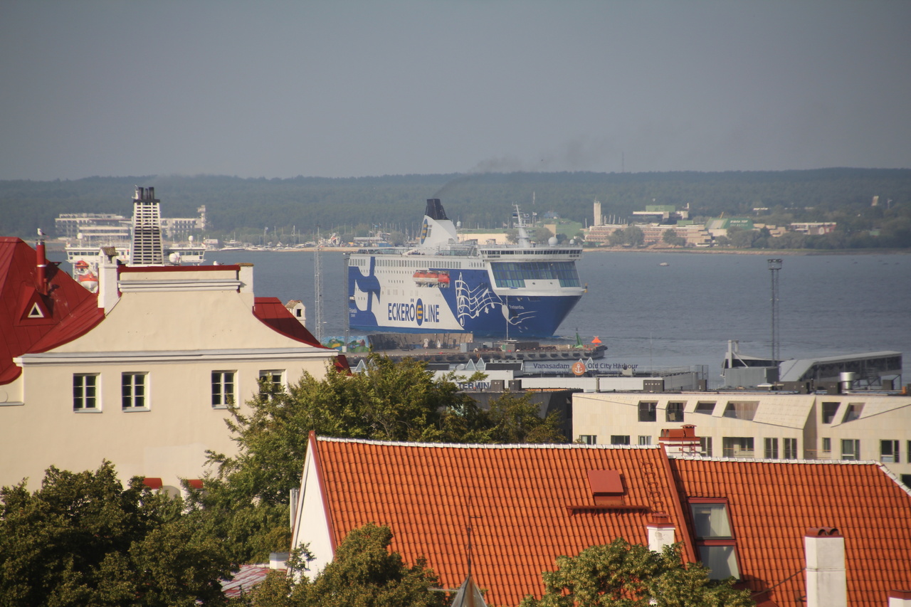 명소답게 까페나 기념품 가게들이 많이 보였다. 탈린 시내가 내려다보이는 곳에 다다르니, 멀리 발트해가 보이고 떠있는 큼지막한 배들이 보였다. 아마도 여객선들이 아닐까.