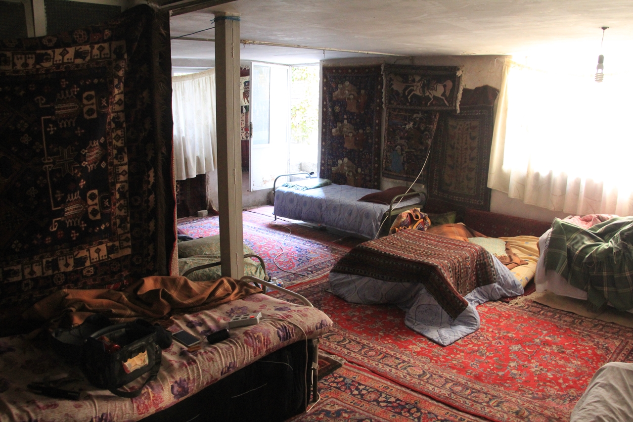 <이란에서의 첫 숙소, 바닥과 벽에 온갖 카페트가 깔려있다>