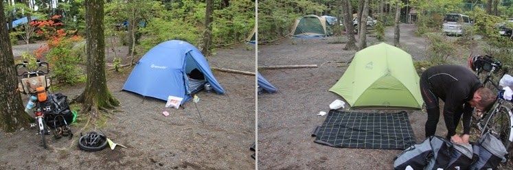 어렵사리 체크인을 하고 텐트를 치려는데 반가운 얼굴이 나타났다. 바로 이틀 전에 만났던 잉글랜드 자전거 여행자다. 무척 반가워서 악수를 하며 안부를 물었다. 그도 어제 내가 갔던 6000엔짜리 캠핑장에 갔던 모양이다.