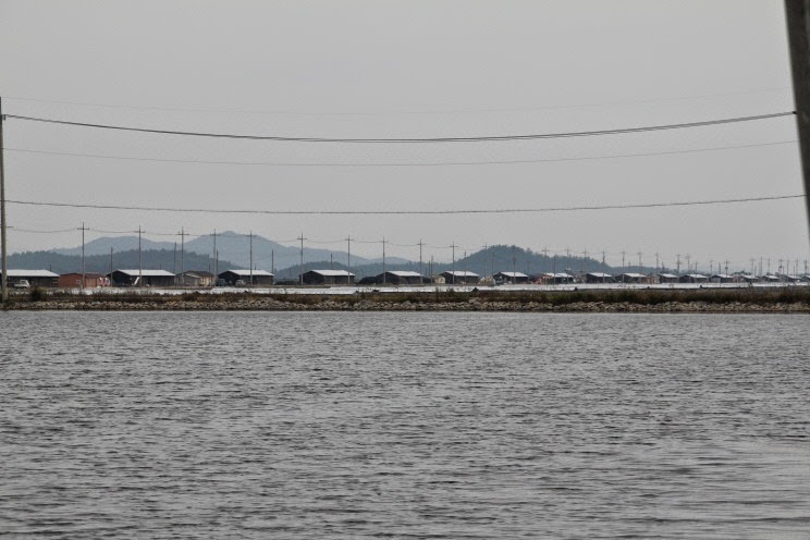 <염전을 위한 건물이 줄지어 늘어서 있다>