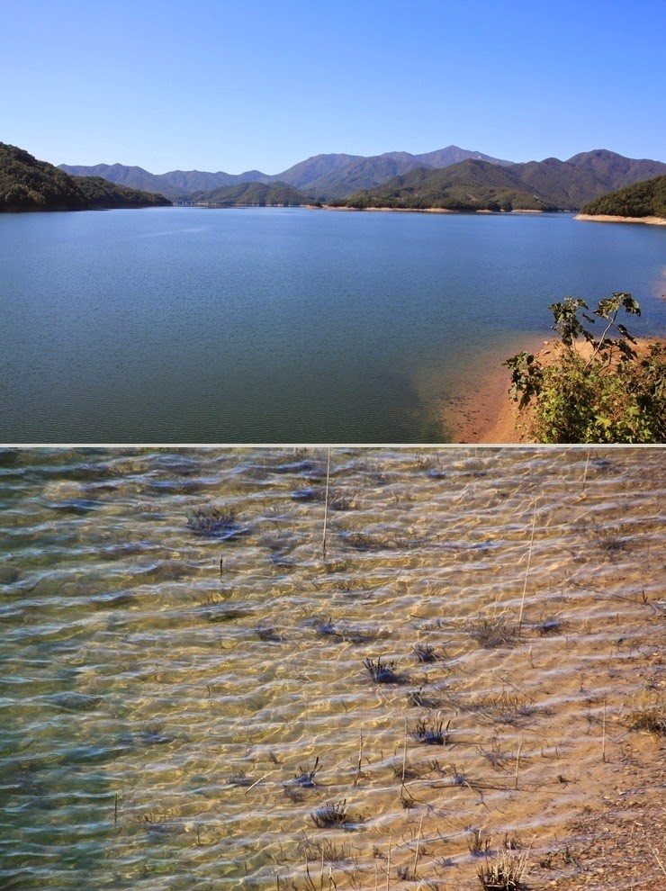 여러날 동안 비가 오지 않아서, 달리다가 저수지나 호수를 보면 바닥이 보일정도로 얕아져 있다.