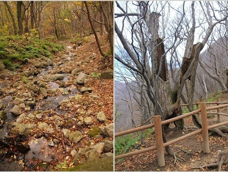 등산로는 울긋불긋 색색깔의 낙엽들로 포장되어 있었다.