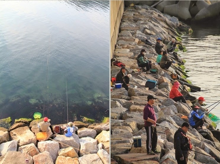 거의 방파제에 자리를 잡고 낚시를 했는데, 잡은 걸 보니 작게는 붕어만한 것부터 크게는 어린아이 팔뚝만한 것까지 나름 그쪽 부근에서 잘 잡히는 것 같았다.