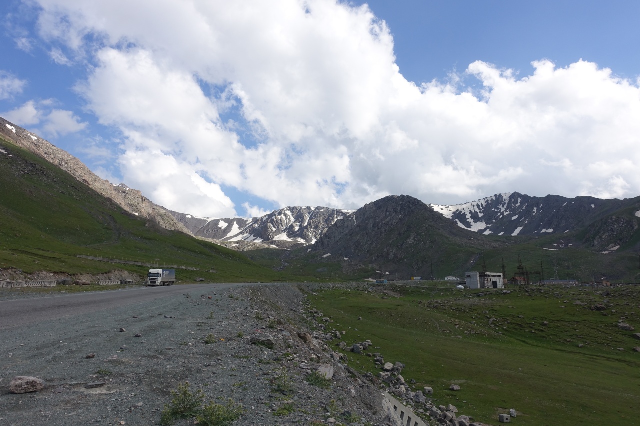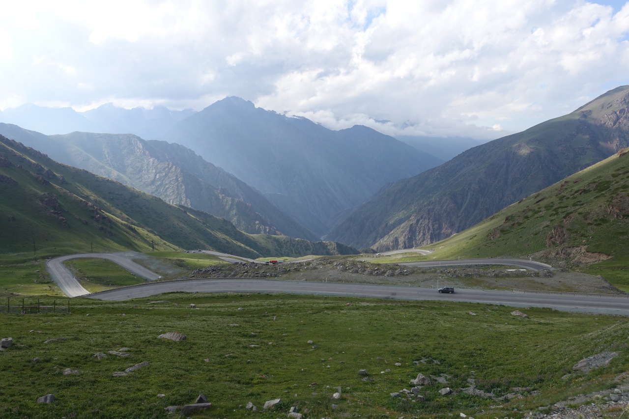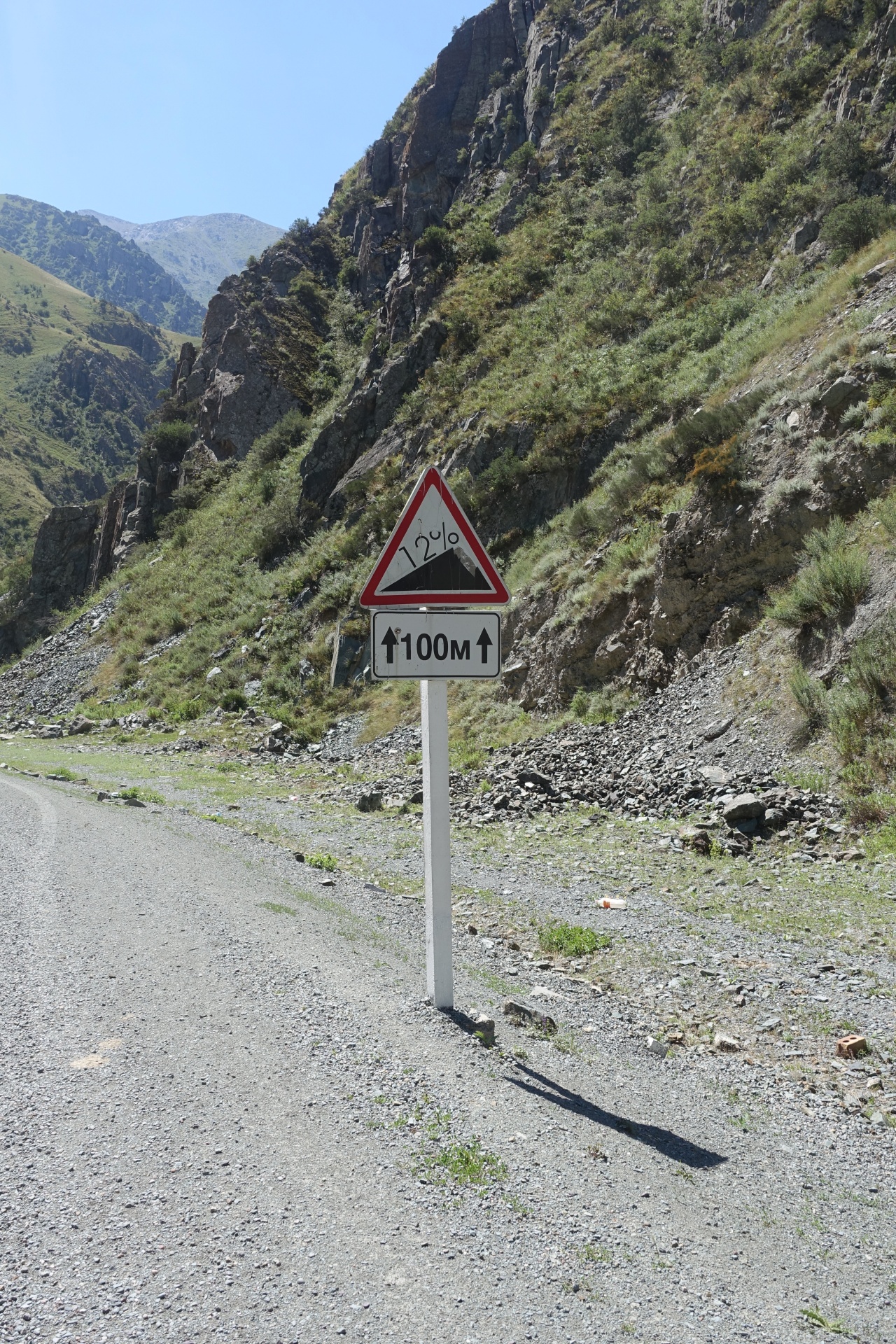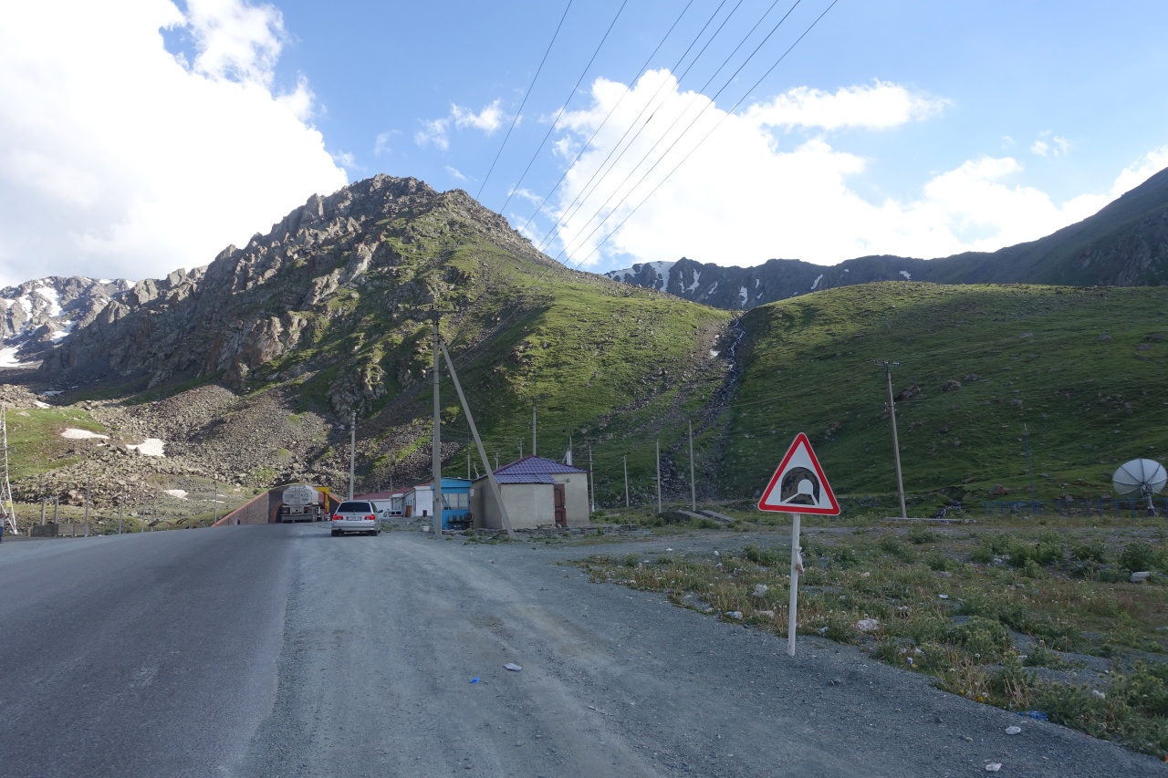 쉬며 걸어가며를 수십번. 2400m 정도 올랐을 때 휴게소같은 가게가 있어, 먹을 것을 보충했다. 주인 할아버지는 나에게 보드카를 권했지만 급구 사양했다. 고도가 올라 갈수록 8자도로와 산 중턱을 깎아만든 짧은 구간의 터널이 있었다. 끌바의 어려움도 있었지만 차들이 언덕을 오르며 내뿜는 매연이 더 힘들게 했다. 오르막 경사도가 12% 가 되는 구간이 많아 곳곳에 과열된 엔진을 식히거나 차를 고치기위해 멈춰선 차량들이 보였다.